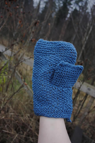 Neuleen mittoja on helppo muuttaa käyttäjän käden mittojen mukaan. Tässä neulottu kinnas sopii naisen käteen.