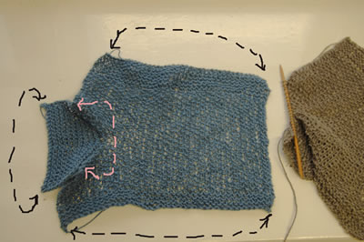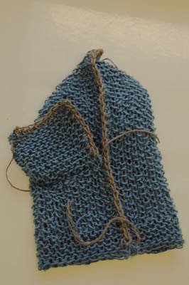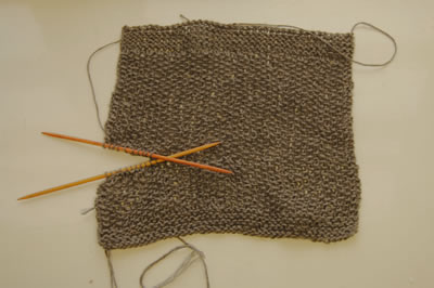 Neulo 8 kerrosta aina oikein -neuletta. Jatka sitten noin 15 kerrosta helmineuletta (6 cm).