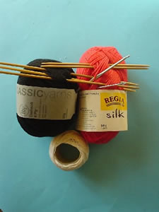 Pieni kerä kuvassa alhaalla on ohutta tiukkakierteistä puuvillalankaa, jota käytän apulankana neuleissani - ketjusilmukat ja odottavat silmukat jne.