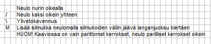 Tarkista, ettei neule ole kierteellä ja jatka sileää neuletta. Aloita kaavion mukainen