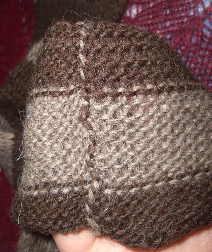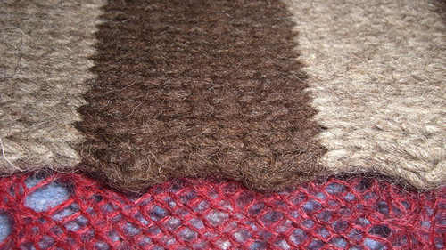 Huivissa on 18 tummanruskeaa raitaa ja 17 meleerattua ruskeaa raitaa.