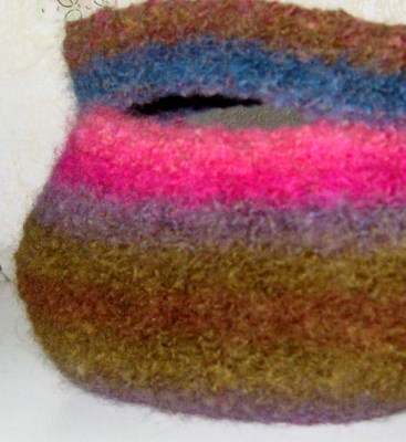 Virkattu laukku oli valmiina todella löysä, joten siihen piti saada ryhtiä. Nakkasin sen pesukoneeseen huopumaan. Testasin ensimmäisenä villapesun vaikutuksen Puroon. Langalle ei tapahtunut mitään, joten laitoin laukun seuraavaksi 60 asteen pikapesuun. Laukku huopui nätisti ja sai kaipaamaansa ryhtiä. Tekemäni pipo ei huovutusta kaivannut ja on varsin kivan näköinen omassa väriloistossaan.