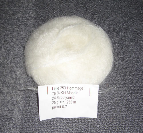 Hommage on kaunis ja pehmeä mohairlanka. Vaikka itse en juurikaan tee mohairista mitään enkä pidä siitä sen pölyämisen takia, tämä lanka oli kyllä testaamisen arvoinen. Langasta on valmistettu useita värejä ja se on lähes seitinohutta. Upeat värit näet esimerkiksi täällä: http://www.online-yarns.de/index.php?site=produkte_detail&id=110253
