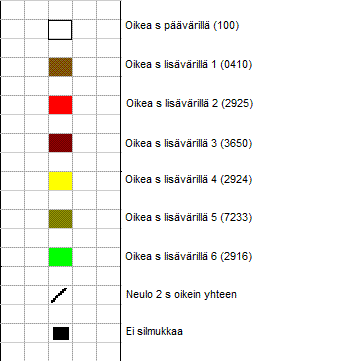 Lisäksi joka koossa samaa tai vastaavaa lankaa lisävärit kirjoneuletta varten: