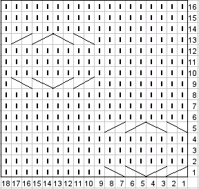Neulo 2 kerrosta oikein ja aloita sitten mallineule ruutupiirroksen 1 mukaan.