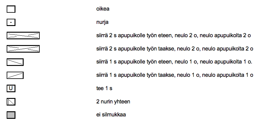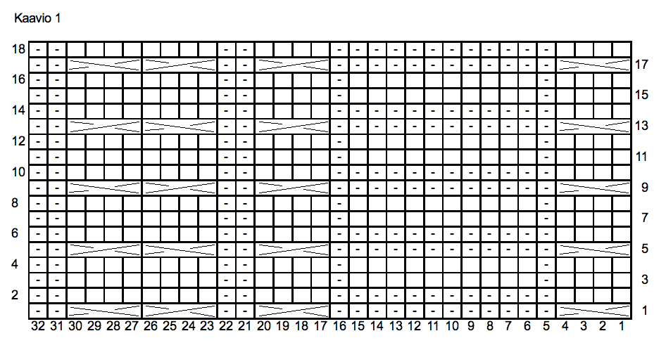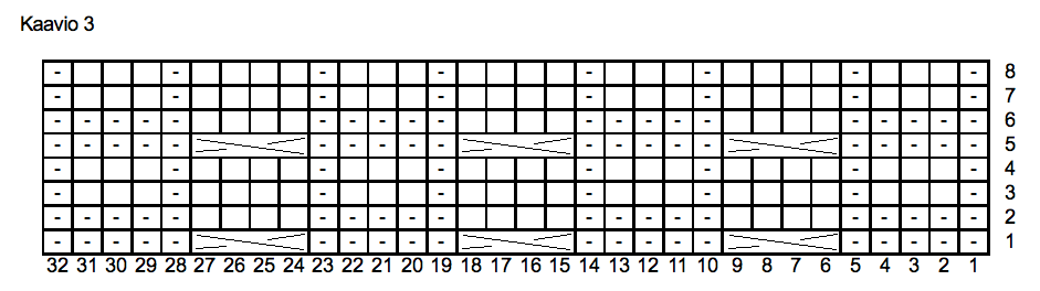 Luo 32 silmukkaa. Neulo yksi kerros työn nurjalta puolelta seuraavasti: