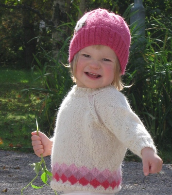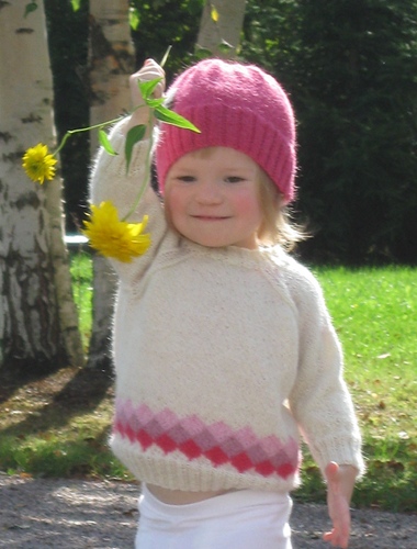 Kauniit pienet alpakkakerät alkoivat kiipeillä korista käsiini ja tahtoivat paidaksi. Sopivasti samaan aikaan pieni tyttö tarvitsi syksyyn lämmintä päälle pantavaa. Yhdistelmänä syntyi nopeasti neuloutuva paita, jossa on mahdollisimman vähän saumoja.