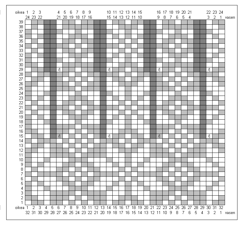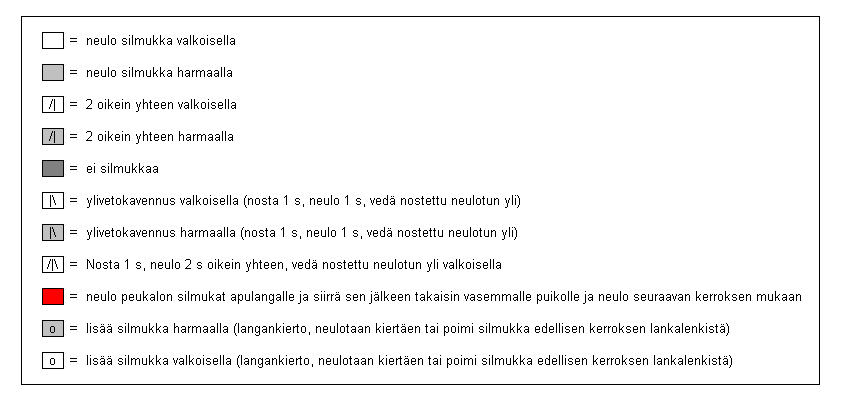 Neulo toinen lapanen samoin, mutta peilikuvana (huom. lue kaavioita eri suunnasta).