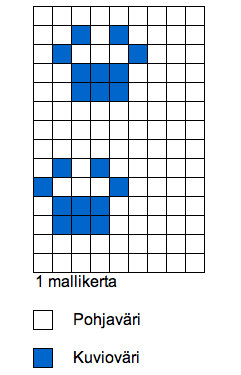 Neulo 3 krs oikein onteloneuletta. Aloita tämän jälkeen 2. puikon alussa kuvioneulos kaavion mukaan.