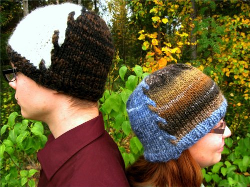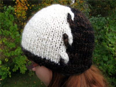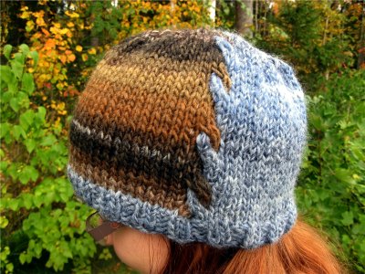 Minua kiinnosti kaksivärisen palmikon käyttö jossain muodossa, mutta olin kuullut pelotteluja sen tuskaisuudesta lukemattomien erillisten kerien mennessä solmulle. Muutenkin se kuulosti työläältä tekniikalta. Pyörönä tekeminen olisi kuulemma erityisen mahdotonta, koska lanka pitäisi katkaista joka kerroksella tai langanjuoksut venyisivät puolen pipon mittaisiksi. Maailma kuitenkin tarvitsee edelläkävijöitä, joten sain aikaan tavan tehdä saumattoman pipon kahdella värillä ja ilman langanjuoksuja. Pipon nimen syntytavasta en ole oikein perillä, luultavasti piposta tuli Hamsteripipo, koska koko neulomiseen kuluneen parituntisen ajan päässäni soi erään pikkuihmisen itse keksimä Hamsterilaulu.