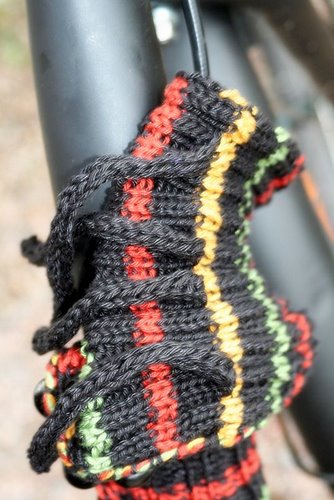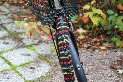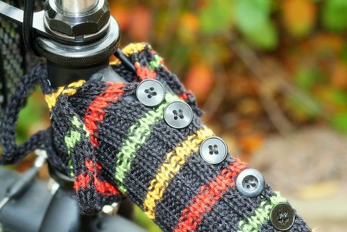 Tällä ohjeella voit tehdä paidan myös polkupyörällesi, koska ”paita” neulotaan ylhäältä alas ja täten sen pituutta on helppo säädellä omaan pyörään sopivaksi. Lisäksi joustinneule joustaa ja ”paidan” sidontamekanismi mahdollistaa sen kiinnittämisen myös perinteisen pyörän hankaimiin.
