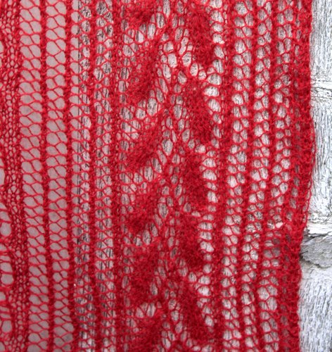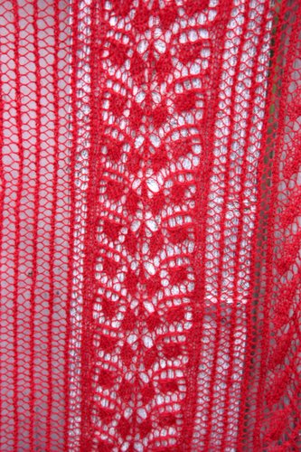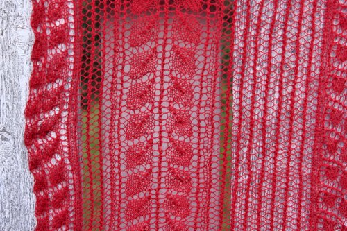 Voit muuttaa huivin leveyttä muuttamalla verkkopitsin (osat 1b, 3, 5 ja 7) leveyttä. Verkkopitsi on kapeimmillaan7 silmukan levyinen: 2 alkusilmukkaa, 3 mallineulesilmukkaa ja 2 loppusilmukkaa.
