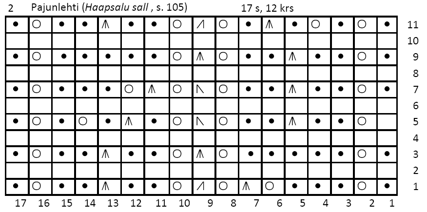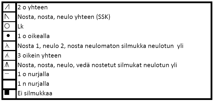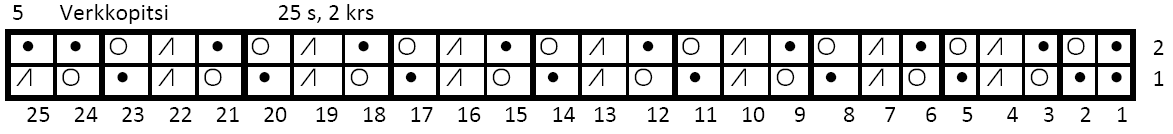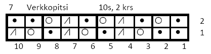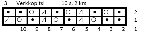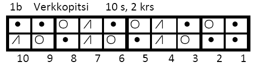 | 1b | Verkkopitsi | 10 | 2 alkusilmukkaa + (2 x 3) + 2 loppusilmukkaa | 2 | |