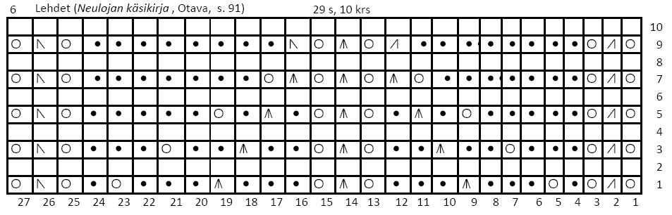 10. krs (oikea puoli): 1 o,*lk, 2 o yht.*, 1 o.
