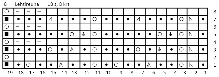 22. krs: aloita mallineuleet ruutumallin mukaan.