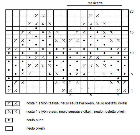 OP: Nosta 1 s nurin, neulo 8 o, ylivetokavennus