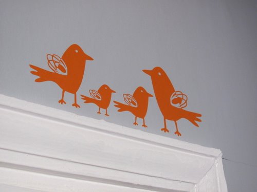 Sisältä myymälä on hyvin valoisa ja raikas. Langat väreineen pääsevät oikeuksiinsa valkoisissa hyllyissä ja luonnonvalossa eikä värejä tarvitse lähteä tutkimaan ikkunan viereen. Kauppa on viihtyisästi sisustettu ja hauskoina yksityiskohtina seinillä seikkailevat jänikset, lampaat ja linnut ovat hyvin keksitty lisä muuten yksinkertaisen niukkaan tyyliin. Näytteillä on myös kaupassa myynnissä olevista langoista toteutettuja neuleita.