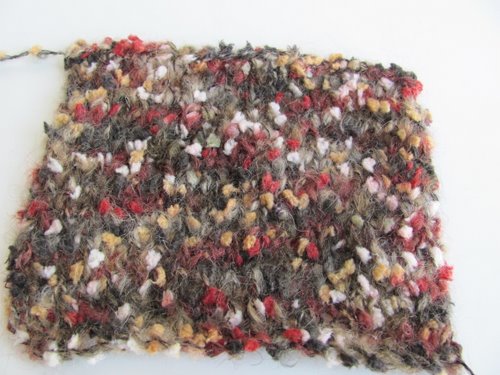 Lanka neuloutui melko helposti, mutta halkeili hiukan ja takertui jonkin verran toisiin silmukoihin. Neuloin mallitilkun suosituksen mukaisilla 7 mm puikoilla, joilla pääsinkin juuri vyötteen neuletiheyteen. Syntyvä neulepinta on hyvinkin harvaa lähempää tarkasteltuna, mutta langan pörröisyys ja pompulat tuntuvat peittävän pinnan hyvin. Lankaa ei kannata käyttää monimutkaisempiin pintaneuleisiin, sillä tässä langassa ne eivät juurikaan erotu. Isoilla puikoilla ja yksinkertaisilla pintaneuleilla saat tästä langasta nopeasti näyttäviä neuleita. Pienten lasten neuleisiin en lankaa suosittelisi, sillä se on melko karheaa.