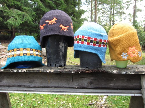 Neulo pipo yhtenä kappaleena. Aloita työ kaksinkertaisen reunuksen nurjalle puolelle jäävästä osasta ja lopeta päälaelle. Neulo korvaläpät tekniikalla, jolla tavallisesti teet neulekoneella sukan kärjen.