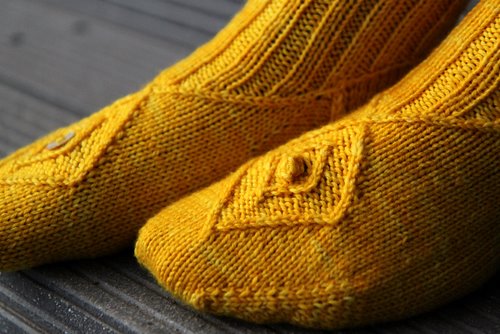 minulla oli idea ja kerä keltaista sukkalankaa. Sukkaohjeissa on jos jonkinlaisia pintaneuleita