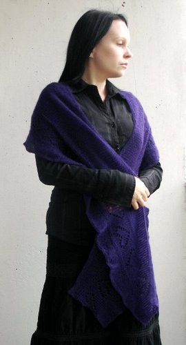 Huivin sileä osuus muotoillaan lyhennetyin kerroksin, jotka on helppo aloittelijankin neuloa. Reunuksessa on selkeä pitsikuvio ja muodikas röyhelö.