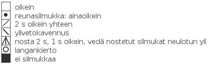 silmukan kanssa oikein yhteen. Neulo 4 s, kiedo & käännä.