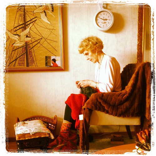 Vuosikymmeniä meidän suvun sukitti isäni äiti. Hän sukitti välillä myös äidinkin puolen sukua, kun siellä ei ollut sukanneulojaa. Sittemmin vastuu on siirtynyt minulle, mutta tänä syksynä mamma on ottanut taas puikot käsiinsä ja suorastaan tehtaillut sukkia. On ehkä parasta istuskella siellä kahvikupposen äärellä, puikot käsissä ja keskustella kutomisesta (mamma ehdottomasti kutoo). Muistella menneitä neuleita, menneitä malleja ja lankoja. Katsoa, miten minut neulomaan opettanut isoäitini hämmästelee neulomiani sukkia, kehuu, kuinka kauniita ne ovat ja väittää, ettei osaisi itse enää moisia tehdä. Mutta enhän minäkään osaisi, ellei hän olisi minua opettanut aikoinaan. Näistä asioista on tehty hyvät syysillat ja talvipäivät.