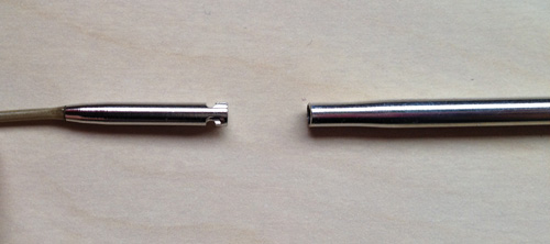 Puikkoja ja kaapeleita saa siis ostaa joko setteinä tai yksitellen. Puikot on pakattu omiin yksittäisiin paketteihinsa, mutta kaapelit myydään yleensä kolmen kappaleen paketissa ja ne ovat yleensä keskenään eripituisia. Kaapeleiden väri vaihtelee ostopaikan mukaan - Euroopassa on tarjolla kullanväristä ja USA:ssa sinistä. Sekä päissä että kaapeleissa on merkinnät, päissä syövytettynä ja kaapeleissa painettuna, siten, että se ei ainakaan ihan heti kulu pois. Kaapeleita tuntuu löytyvän eri tyypeille, eli löytyy pitsi-kaapeleita ja bambukaapeleita, mutta niiden merkitys ei ihan auennut minulle, sillä kaapeleita ja päitä voi vaihdella keskenään, koska kiinnityssysteemi ja mitat ovat samat kaikissa.