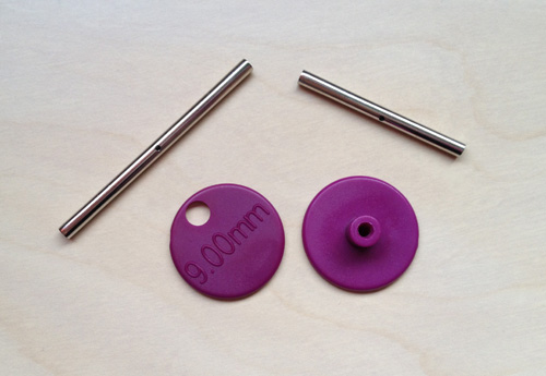 Hiyahiyan irtopäät kiinnitetään kaapeleihin ruuvaamalla, mutta mitään reikää ei osista löydy. Liitosta ei siis kiristetä avaimella vaan mukana tulee kaksi muovista läpyskää, joilla hoidetaan kiristäminen. Kiristämistapa vaikuttaa kyllä ihan toimivalta, ja kun liitoksen kiristää kunnolla, se myös pysyy kiinni eikä aukeile kesken neulomisen. Itse pidän kyllä enemmän näistä avaimella kiristettävistä, sillä vipuvarrella tuntuu saavan enemmän apua läpysköihin verrattuna.