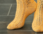 Eeva Savirannan suunnittelemissa Holvi-sukissa on yksinkertainen mutta kaunis pitsikuvio. Adelheidin Walk Like an Egyptian -sukissa kiilalisäykset muodostavat pyramidin jalan alle! TiiQ:n Kontio-sukat sopivat nimensä mukaisesti saappaisiinkin. Meija K-P:n suunnittelemat Krysanteemi-sukat ovat pitsiä pullollaan.