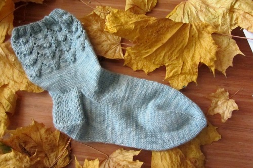 Neulo oikein kantapään toiseen reunaan, poimi kantalapun reunasta 17 - 14 s, neulo jalkapöydän silmukat oikein, poimi toisesta reunasta 17 - 14 s ja neulo 10 - 8 s kantalapusta jääneistä silmukoista 4. puikolle.
