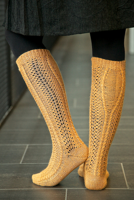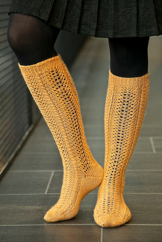 pitsikuvion ja vähän palmikkoa. Sukat ovat ohuesta langasta, joten ne sopivat syyskeleille saappaiden alle