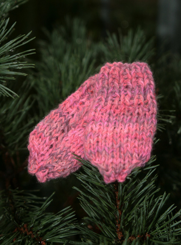 Rakkaat ystäväni saivat pienen tytön juuri siihen vuodenaikaan, kun taivaalta alkoi sataa räntää. Valitsin lankalaatikostani pehmoisimman langan ja neuloin kiireen vilkkaa pikkuiset tumput lämmittämään vauvan nyrkkejä. Neulos on ilmavaa, joten tumppuja voi käyttää myös sisällä - vauvat raapivat helposti vahingossa kasvojaan ennen kuin oppivat hallitsemaan käsiään.