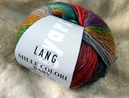 Langin Mille Colori Baby on pehmoinen, yksisäikeinen merinolanka. Sen paksummat sisarlangat Mille Colori ja Mille Colori Big ovat sekoitteita, mutta tässä vauvalangaksi nimetyssä ei ole laatukuiduista kitsasteltu; lanka on kokonaan merinoa. Se tuntuu neuloessa mukavan pehmeältä ja sileältä.