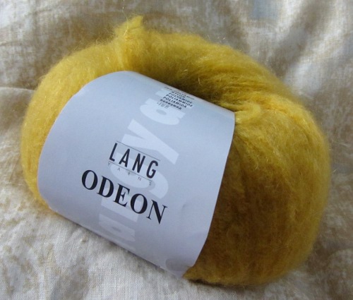Langin Odeon on paksu ja pörröinen lanka. Langan perustan muodostaa harjattu mohair, jota on täydennetty keinokuiduilla. Kerä on vain 50 gramman painoinen, mutta huomattavan muhkea eikä lankaa mene painonsa puolesta kovin paljoa edes isoihin neuleisiin.