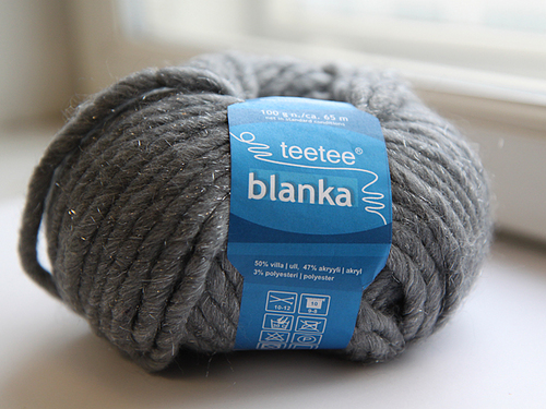 Teeteen Blanka on todella paksua villalankaa ja suosituspuikot ovatkin 10–12, joilla saa aikaan noin 9 silmukan pintaa kymmenellä senttimetrillä. Teeteen sivut ovat tämän suhteen hieman ristiriitaiset vyötteen kanssa ja langan tiedot onkin poimittu vyötteestä.