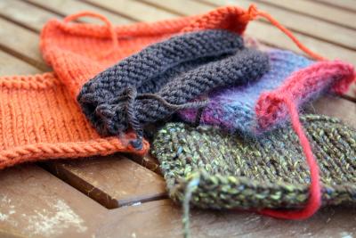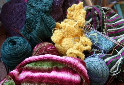 Neuleita voi olla myös kesken lähes tunturimainen määrä. Kuten meillä kotona usein on. Asun nimittäin erään keskeneräisten töiden kruunaamattoman kuningattaren kanssa. On hyvä, että Laika ei lähde kiipeämään tuntureita samalla tekniikalla kuin aloittaa uusia neuleita, sillä siitä ei tulisi mitään. Tekniikka on nimittäin enemmän tai vähemmän seuraava: ensimmäisessä vaiheessa tulee valtava innostus jostain uudesta, joka pitää aloittaa tietenkin Heti. Seuraavat pari päivää tuota uutta neuletta pakerretaan lähes tauotta ja kuumeisesti, kaikki muu unohtuu. Sitten tuleekin jo idea ja näkemys seuraavasta työstä ja keskeneräinen neule unohdetaan projektipussukkaan, mikäli työ ei ollut sen verran pieni, että se olisi ehtinyt valmistua tässä parin päivän hurmoksessa. Tässä on syy siihen, miksi meillä kaikki puikkotipsit ovat aina neuleissa kiinni ja projektipussukat varattuina. Jos haluan itse aloittaa jotain ja huomaan puikkopussukan ratsauksen jälkeen, ettei siellä ole yhtään irtopäätä, seuraava etappi on aina Laikan neulepinojen läpikäyminen. Sieltä ne lähes aina löytyvät.