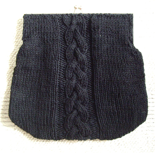 Kokoa on helppo muunnella luomalla silmukoita aloitukseen enemmän tai vähemmän. Korkeutta saa muunneltua lisäämällä tai vähentämällä välikerroksia. Pintaa voi myös varioida. Olen tehnyt toisen laukun palmikkokuvioisena kaksinkertaisesta puuvillalangasta.