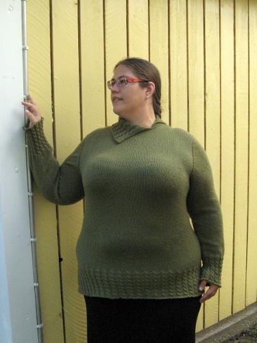 Lakeuden kutsu -pusero pääsi puikoille junassa matkalla kohti Pohjanmaata. Täysin saumaton pusero on neulottu ylhäältä alas. Etukappaleen silmukat poimitaan takakappaleen luontireunasta, hihasilmukat kädenteiltä. Istutetut hihat on neulottu lyhennetyin kerroksin Barbara Walkerin tekniikalla.