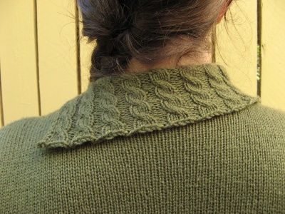Halkiollinen kaulus neulotaan tasona.