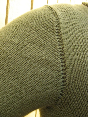 Poimi kädentieltä alkaen kainalon keskikohdasta tasavälein 102 s. Merkitse kerroksen vaihtumiskohta silmukkamerkillä. Neulo 1 krs o. Jos työhön näyttää jäävän reikiä, neulo tämän krs:n s:t kiertäen.