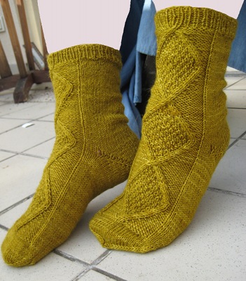 Nämä sukat syntyivät Ravelryn Kahelit-ryhmän Suomalaisen sukkahaasteen 2013 elokuun palmikkohaasteeseen. Olin ihaillut tätä mallikuviota neuletakeissa ja ajattelin kokeilla kuinka se sopisi sukkiin. Halusin palmikosta yksinkertaisen, selkeän ja graafisen. Sukkien nimi tulee laulusta Let's twist again.