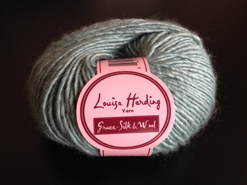 Kerällä Louisa Hardingin Grace näyttää hyvin kiiltävältä. Lanka tuntuu pehmeltä ja melko liukkaalta. Grace on ehkä hieman paksumpaa kuin esimerkiksi Manos del Uruguayn Silk Blend. Muita yksisäikeisiä villaa ja silkkiä sisältäviä lankoja en muista itse nähneeni, mutta tiedän että vastaavia on muillakin valmistajilla.