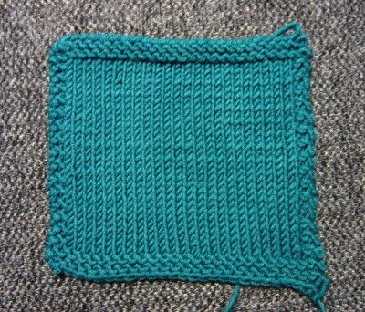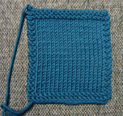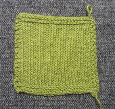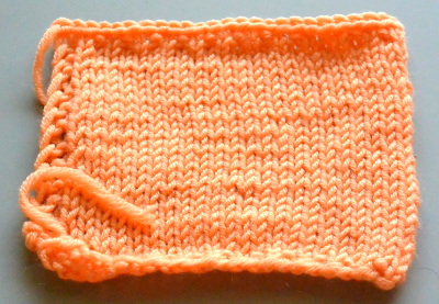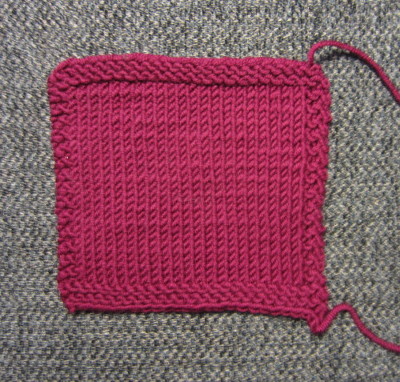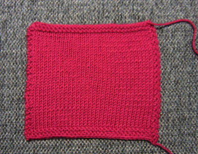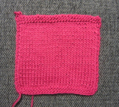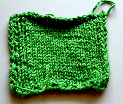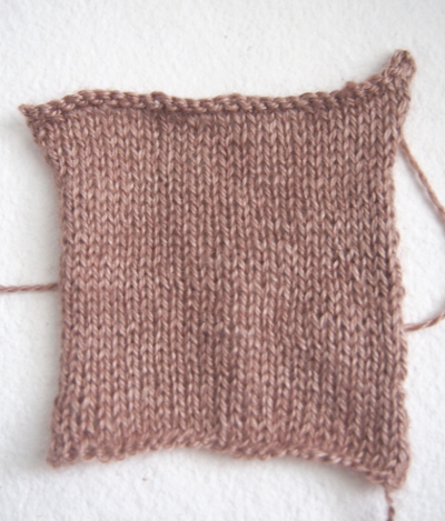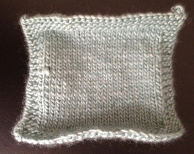 Lankaa suositellaan neulottavaksi 3,75 mm:n puikoilla. Neuloin mallitilkun 4,0 mm:n puikoilla ja nekin tuntuivat hieman liian ohuilta. Kireästä käsialastani huolimatta en kuitenkaan päässyt suositustiheyteen, joka tuntuukin ihan liian suurelta. Oma tiheyteni oli 17 s / 10 cm ja vyötteen suositustiheys 21 s / 10 cm. Laskeutuvan vaatteen tiheydeksi sopisi 18 s / 10 cm.