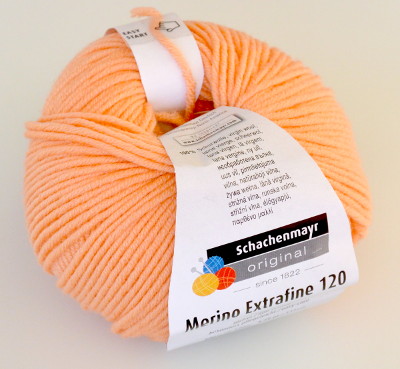 Merino Extrafine 120 on tiukkakierteinen villalanka. Tämän mallisista keristä on välillä vaikea löytää langan päätä kerän sisältä. Schachenmayr on ilmeisesti asian myös huomannut tai saanut kylliksi palautetta, koska ovat keksineet laittaa langan pään lisävyötteeseen kiinni. Mainio idea. Neuloessa tosin huomasin, että lanka kiertyy hieman itsensä ympärille jo pientä mallitilkkua tehdessä. En ole varma johtuuko tämä langan ottamisesta sisältä, vai olisiko ongelma joka tapauksessa olemassa.