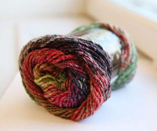 Taas uusi Noro-lanka. Minä en osaa sanoa, miten tämä eroaa jo kaikista muista olemassa olevista Noro-langoista. Janomessa on villaa ja silkkiä ja se on neulottaessa kuivan oloinen. Sama fiilis on mallitilkussa.