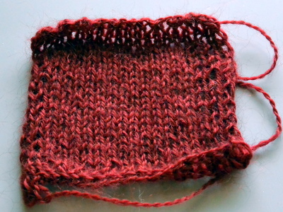 Käsinpesussa mallitilkun tiheys ei muuttunut, mutta neulepinta muuttui huomattavasti pörhöisemmäksi. Pesun jälkeen neulepinnasta erkanee runsaasti lyhyttä karvaa. Langan vyötteessä pyydetään "please knit and handle this yarn with care", joten on toki mahdollista, etten pessyt tilkkua tarpeeksi hellävaraisesti, koska en ole tottunut silkin käsittelyyn. Pörhöisyyden takia en kuitenkaan usko, että esimerkiksi tästä langasta neulotun villapaidan kainalot tai kyynärpäät pysyisivät siisteinä kovin pitkään. Tekisin kuitenkin itse varsin mielelläni tästä muutaman asusteen.