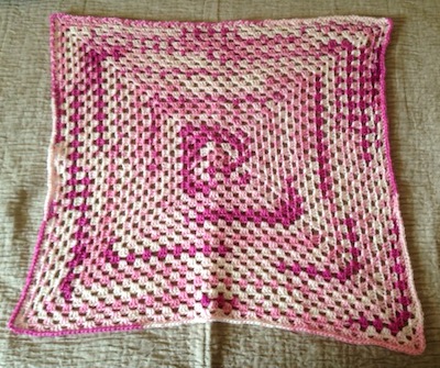 Testattavana ollut väri näytti kerällä vaihtavan väriä melko tasaisesti, mutta peiton edetessä paljastui, että yleisvaikutelma on melko vaalea. Kirkkaampaa pinkkiä ja aniliininpunaista oli kerällä selvästi vähemmän. Lanka tuntui melko liukkaalta ja liukui metallisella virkkauspuikolla varsin sujuvasti. Itse yllätyin positiivisesti siitä, että lanka ei halkeillut käytännössä ollenkaan. Se on myös pehmeän tuntuista käsissä, mutta ei tunnu muoviselta kuten jotkut keinokuitulangat. Eniten Onni-lanka muistuttaa yleistuntumaltaan ehkä Novitan Puro Batik -lankaa, mutta oman kokemukseni mukaan Puro Batik halkeilee paljon helpommin.