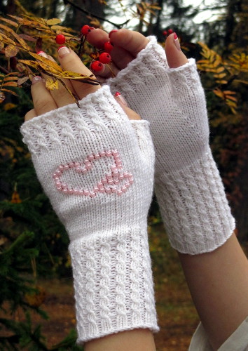Idea kämmekkäisiin tuli, kuten minulla yleensäkin, keskellä yötä selkeästä visiosta. Juuri tällaiset kämmekkäät haluan. Ja haluan ne juuri tästä langasta. Niinpä aloin suunnitella. Yllättäen tästä tulikin ensimmäinen suunnittelemani ohje, jonka saan kirjoitettua kunnolliseksi ohjeeksi saakka. Kauniit helmet tuovat juhlan tuntua Ullan kymppisynttäreiden kunniaksi.