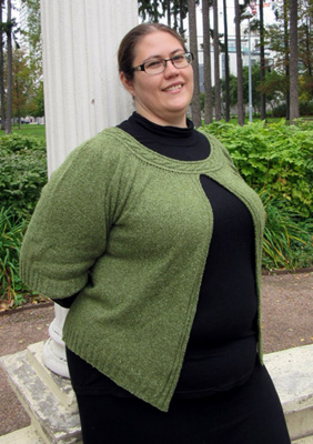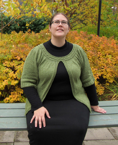 Kaari-takki syntyi työhuonevaraksi satavuotiaan talon toimistohuoneeseen. Puolihihainen väljä kaarrokejakku lämmittää hartioita, kun ikkunanraoista vetää tai lämmitys ei aivan pysy kylmenevän sään tasalla. Työ aloitetaan neulomalla kauluksen lyhennetyin kerroksin muotoiltu palmikkokaitale. Kaitaleen päät ommellaan yhteen ja vartalokappaleen silmukat poimitaan kauluksen ulkoreunasta. Kiinteän kauluksen lisäksi jakkuun ei tule muuta kiinnitystä.